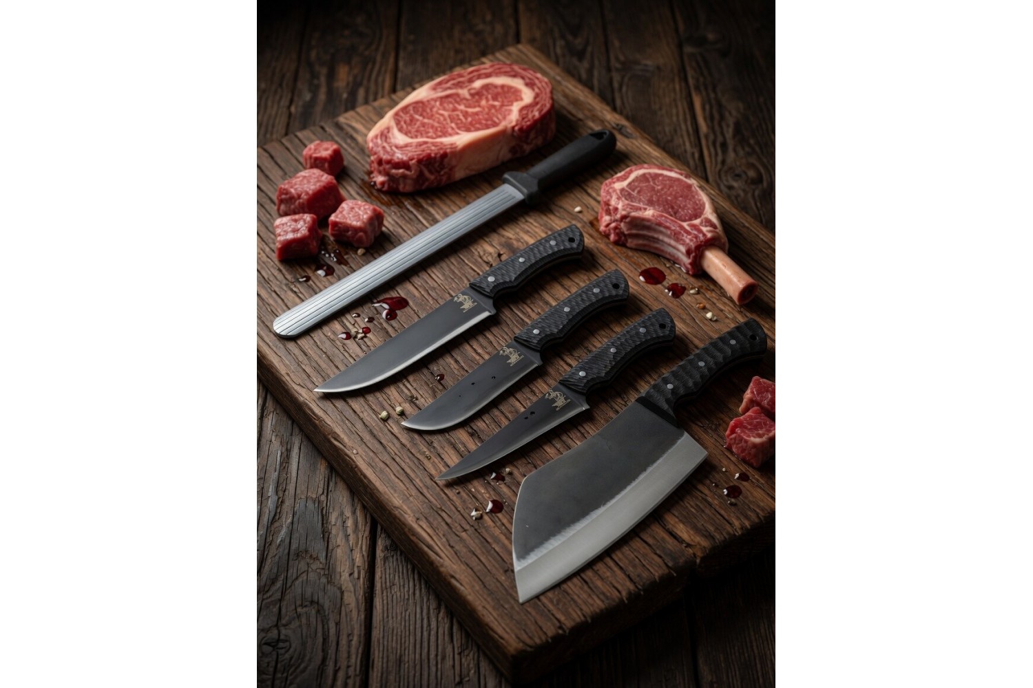 Çelik 40.31Sertifikalı Paslanmaz ÇelikKasap No1 Namlu 14cm Kasap No 2Namlu 16cm Şef No 1Namlu16cmDoğrama Bıçağı Namlu 25cm..