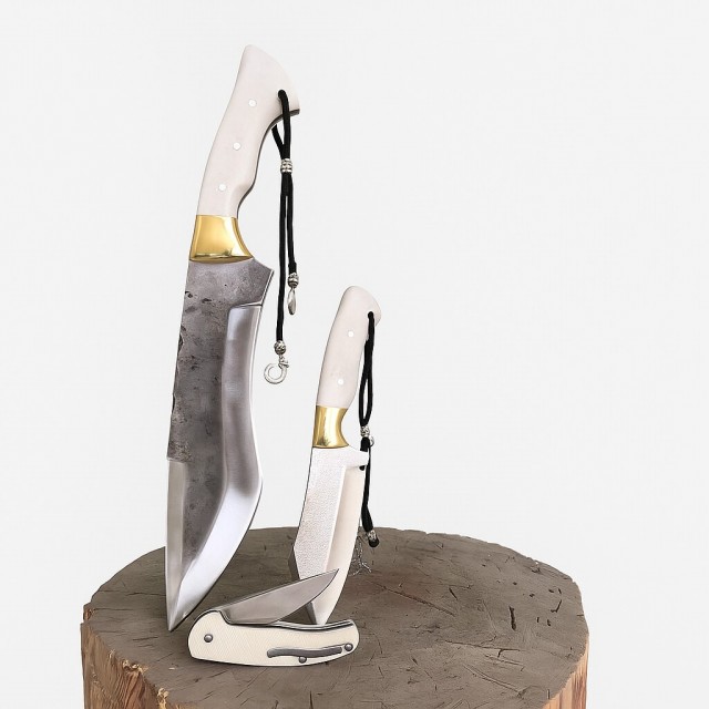 Çelik . Kamyon sustası parçalarından dövülerek imal edildi