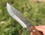 Çelik: 4116 paslanmaz çelikAğız: 18,5cm Sap: 14cmKalınlık: 4mmSap: Kökcevizden frezede işlenmiş Kurt figürüSertlik 58-59 HRC..