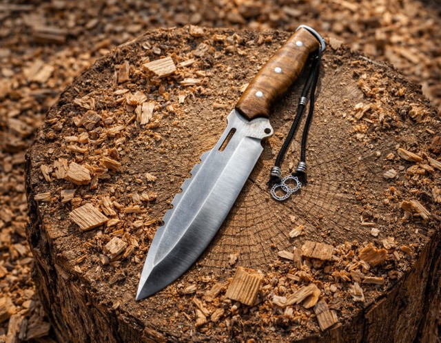 Çelik: 4116 paslanmaz çelikAğız: 18,5cm Sap: 14cmKalınlık: 4mmSap: Kökcevizden frezede işlenmiş Kurt figürüSertlik 58-59 HRC..